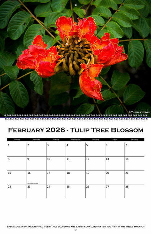 The calendar is spiral bound at the top with a hanging point. The days of the month are at the bottom and the title for each page indicates the location. There is a caption on each page with more info about the photo. Note that this is not a datebook calendar - for that look at my other options below.